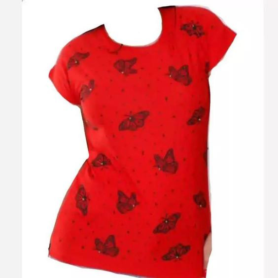 تی شرت زنانه پروانه ای رنگ قرمز جنس ریون کشی اعلا
