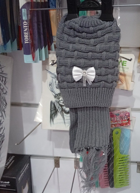 شال کلاه دخترانه مدل پاپیون پفکی رنگ طوسی 3تا7سال