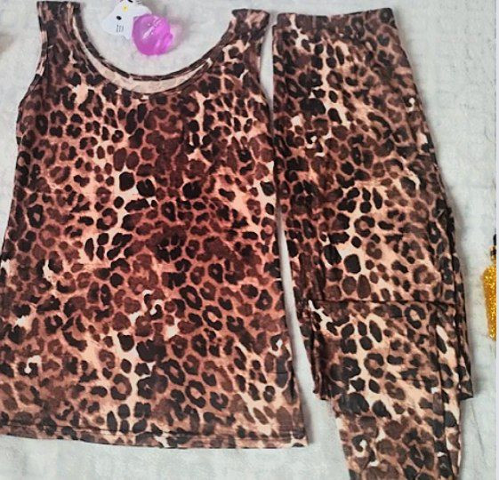 تاپ شلوار پلنگی وارداتی سایز 48/رنگ قهوه ای