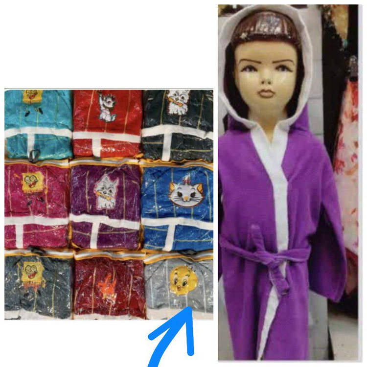 باسلام خدمت مشتریان محترم این کار حوله تن پوش کلاهدار مدل کمربندی رنگطوسی روشن با طرح رو کلاه
