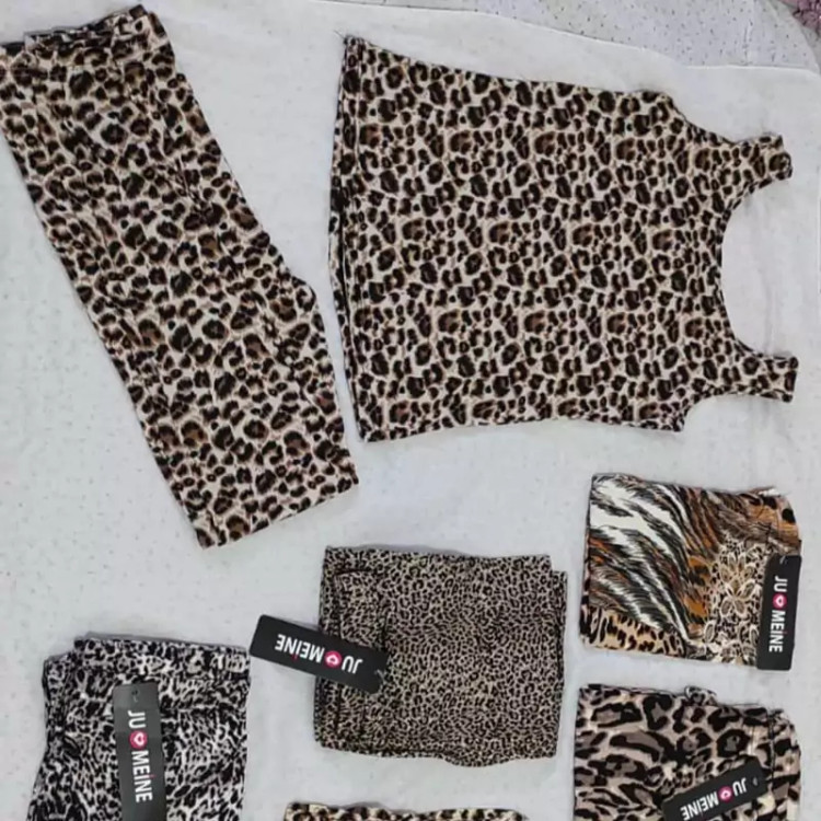 ست پلنگی شلوار و تاپ زنانه نخی پنبه ای فری سایز بسیار لطیف و نرم بدون رنگ و آب رفتگی موجود در چند رنگ و طرح