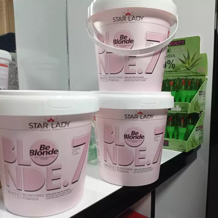 پودر دکلره سفید استار لیدی ضد زردی و ضد قرمزی فاقد غبار با قابلیت نرم کننده کی و روشن کنندگی بالا تا پایه 7 قیمت هر دو پیمانه گرم 80 هزار تومان قیمت هر سطل 500 گرمی 300تومان