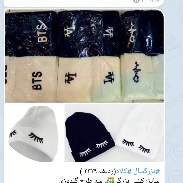 کلاه بافت زنانه و مردانه .کلاه بزرگسالان طرح چشمک کشی بزرگ گلدوزی شده در رنگ مشکی و سفید