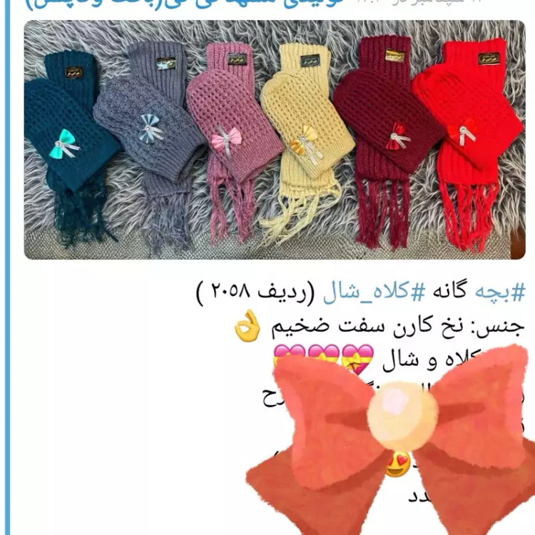 کلاه و شال بچه گانه جنس نخ کارن سفت ضخیم در چند طرح و رنگ قیمت خیلی عالی 💣💣