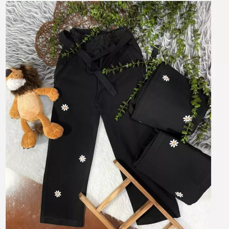 شلوار مجلسی سایز 70،80،90 موجوده رنگ مشکی تک رنگ با طرح گل بابونه