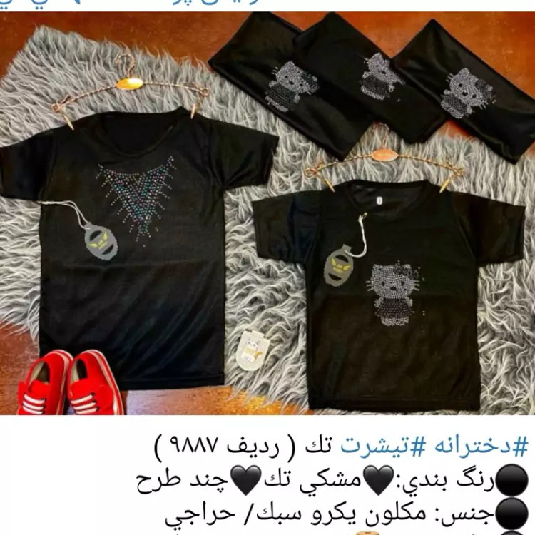 تیشرت تی شرت مشکی دخترانه جنس مکلون یکرو سبک در سایز 35.40.45.50