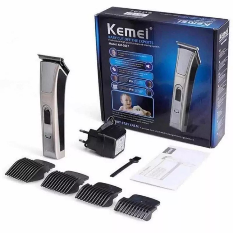 ماشین شارژی اصلاح و خط زن و صفر زن کیمی مدل KEMEI KM-5017 مناسب سالن و خانگی دارای چهار تا شانه به نمره های 3=6=9=12