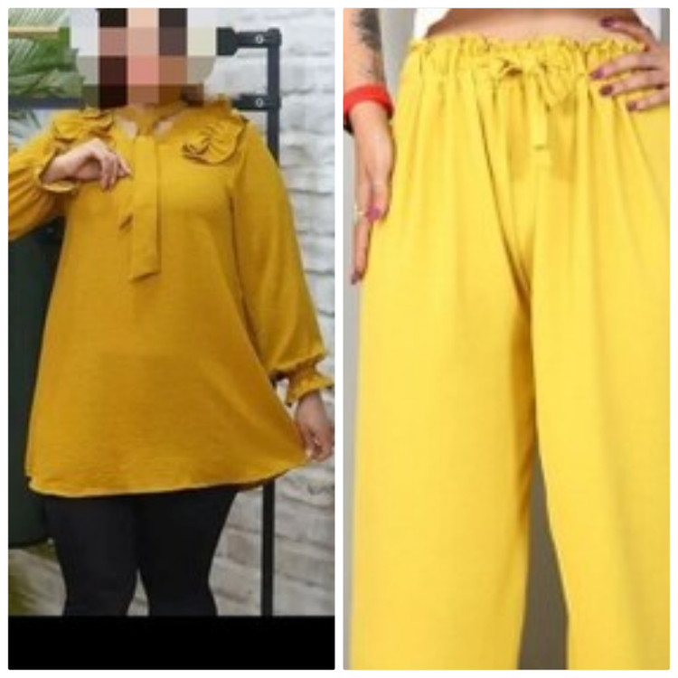 لباس ست زنانه رنگ زرد خردلی جنس ابروبادی اعلا